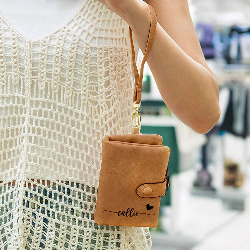 Ce portefeuille à trois volets en cuir PU, au design exquis associé à un nom personnalisé et à un motif en forme de cœur, est à la fois pratique et plein d'émotion, et constitue un excellent choix de cadeau pour les femmes. Qu'il s'agisse d'un usage quotidien ou d'occasions spéciales, il peut montrer un goût et une tendresse uniques. La fonction de porte-cartes spécialement conçue et le style de bracelet sont portables et pratiques, rendant chaque voyage plus détendu et confortable. 💖👛